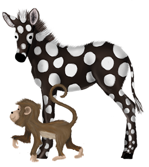 Zotts is a zebra who was born with spots instead of stripes. He is shy and concerned about being different.
